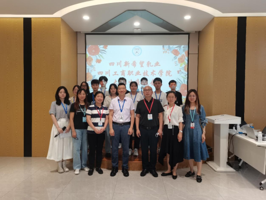 2022年4月初,食品生物技术专业选派了12名员工前往新希望乳业旗下的新华西乳业有限公司开展工学结合实习,为了构建良好的实习生与公司管理层沟通渠道,增加实习生对公司的认同感与归属感。6月10日新华西乳业组织新进实习生召开座谈会, 参加会议的人员有太阳成tyc7111cc总支书记张崇军、院经理助理邓林、食品生物技术专业教研室主任王静霞,新华西乳业总经理助理秦华龙、生产总监袁雄雄、质量技术部副经理兰静秋,以及食品生物技术专业的12名实习生。