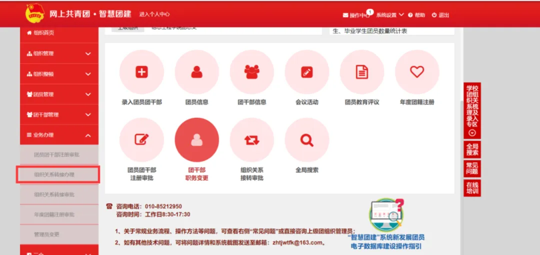 ③团组织关系转接须完成线上和线下转接,若团员在“智慧团建”系统上存在信息有误、无法登录等情况,请优先与入学前所在公司团组织联系,确保线上的团组织关系转接顺利进行。