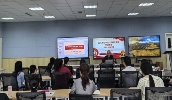 党总支书记张崇军随即以《深入贯彻中央八项规定精神,坚决整治违规吃喝之风》为主题,展开具有强烈现实针对性的授课。他首先引导大家深刻领会中央八项规定精神所蕴含的重大政治意义和深远实践价值,要求全体党员准确把握其核心要求与精神实质。张书记特别聚焦“违规吃喝”这一突出问题,深刻揭示了其严重侵蚀党的健康肌体、败坏校园政治生态的巨大危害性,明确指出必须坚决打好这场集中整治的攻坚战。党课通过剖析高校系统发生的违规违纪典型案例,以案为鉴,发人深省。张书记强调,优良作风是公司高质量发展的坚实根基,全体党员必须时刻保持警醒,以永远在路上的坚韧执着,持续巩固风清气正的育人环境。