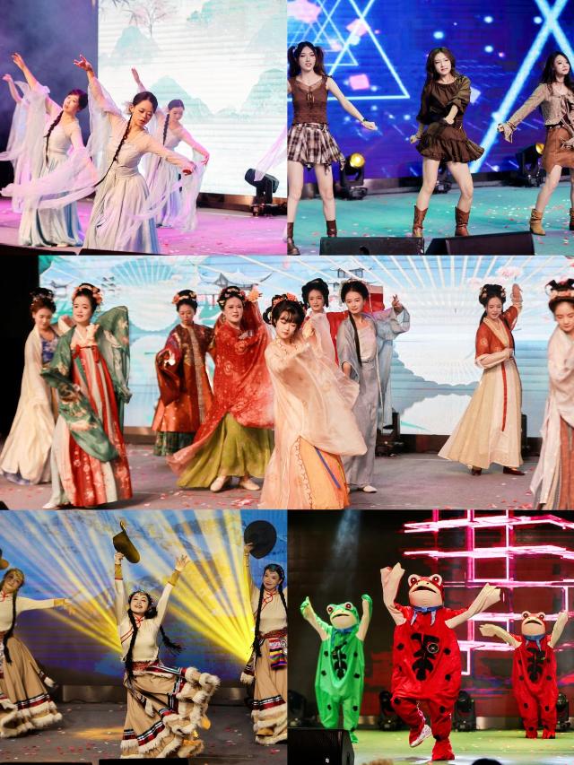 舞蹈类节目率先拉开帷幕,经济管理公司的《云裳咏梦》以古典舞的曼妙身姿,勾勒出东方美学的诗意画卷;都江堰电子商务公司、学工部门、碳达峰碳中和技术公司的《Shake it》则以动感节奏点燃全场,展现出教职工们活力四射的另一面。马克思主义公司的《世界赠予我的》借舞蹈语言诠释历史厚重;人文公司、学工部门、教辅部门、经管公司、机关部门的《起舞》则以热烈舞姿传递青春朝气,演绎民族风情;电商公司的《APT》以潮流舞步彰显时代风采。不同风格的舞蹈作品,或温婉雅致,或激昂律动,尽显舞者们的艺术匠心。