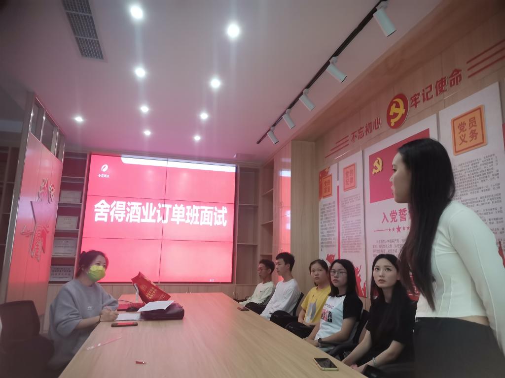 公司经过一周时间收集同学报名信息,9月25日,“舍得酒业订单班”学员面试终于拉开序幕。舍得酒业股份有限公司人力资源部总监刘建军,人事经理刘莹专门到校开展面试活动。