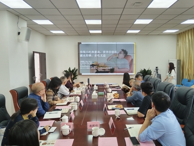 会上,太阳成tyc7111cc教师潘颖越介绍了新产品“金甲奶酪”研发的相关情况,解读了“金甲奶酪”原料配方、生产工艺、贮藏及烹饪食用方法。企业方分析了“金甲奶酪”市场前景,对比市面上热量高、营养低的传统小吃,新产品具有蛋白质营养丰富、口感细腻、热量低等突出优势特点,充分满足消费者对健康、营养、美味的全面需求。