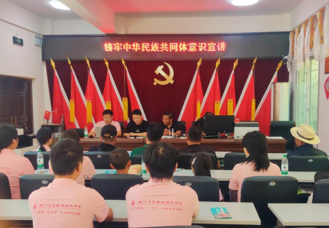 活动在团队指导老师徐毅博士“铸牢中华民族共同体意识”专题讲座中拉开帷幕,磨子沟村两委全体成员、部分村民共同参会学习。徐老师结合当地民族文化特色,从铸牢中华民族共同体意识的提出与内涵、铸牢途径、基本理念、日常践行四个方面深刻阐述了中华民族多元一体格局的历史脉络与现实意义,引导村民与学子共同感悟“中华民族一家亲”的深厚内涵,补足“思想之钙”,增强了民族团结的思想自觉和行动自觉。