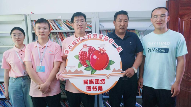 会后,实践队员们手持扫帚、抹布,对磨子沟村图书室进行了彻底的清扫与分类整理,并捐赠爱国教育、民族文化、农学技能、趣味百科等书籍200本,与村委会结对共建“民族团结图书角”。在共建仪式上,团队还特别赠予磨子沟村由队员们亲手制作的“民族大团结”主题纸浆画,画作生动展现了各民族守望相助、和谐共处的美好图景,成为图书室亮丽的风景线,也成为连接高校与乡村的文化桥梁。